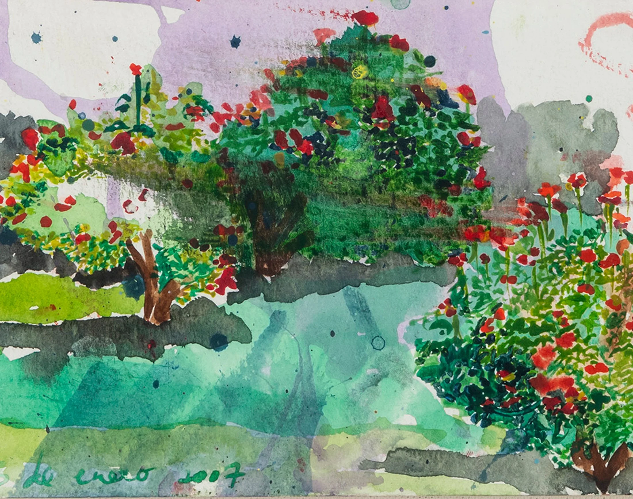 Bosque, Gouache sobre papel, montado sobre tela en caja de acrílico 35 x 30 cms 2023.