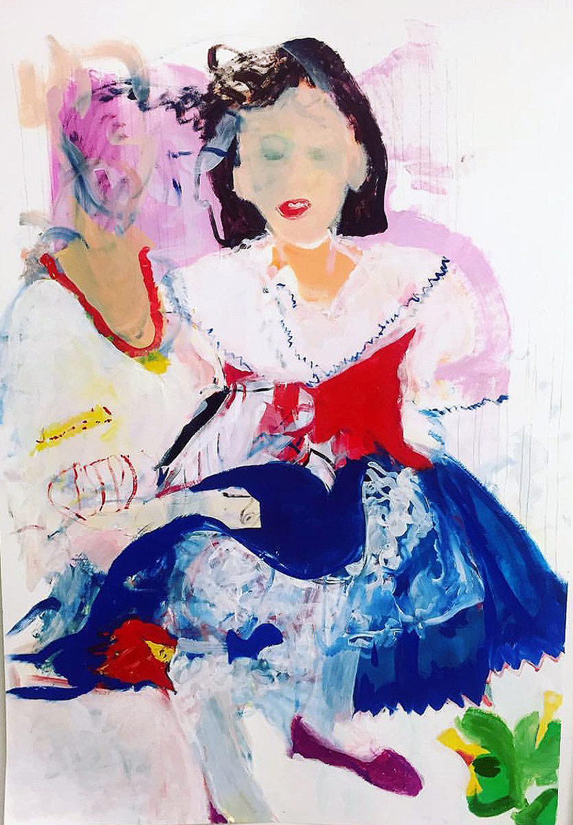Baile #1, óleo, acrílico y pastel sobre papel de algodón, 150 x 110 cms, 2019.